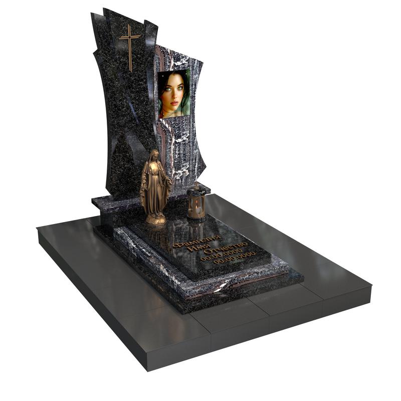 Вставка с фотопортретом на стекле выделяется на фоне тёмного камня, создавая эффект света, пробивающегося сквозь тень. Такой контраст делает памятник особенно символичным и визуально сильным. Благодаря продуманной геометрии и качественной отделке, композиция выглядит современно, строго и глубоко.